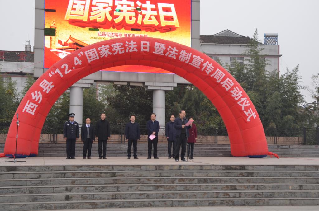 为进一步宣传贯彻党的十九大精神,弘扬宪法精神,在全县掀起“七五”普法新高潮,推动全社会尊法、 学法 、守法、 用法,为“六个西乡”建设提供强有力的法治保障。12月4日,我县在樱花广场隆重举行国家宪法日暨“12.4”法制宣传周系列活动启动仪式,县级四大班子主要领导及城区1000余名干部群众参加集中宣传活动。县人大常委会主任纪文杰出席启动仪式并讲话。